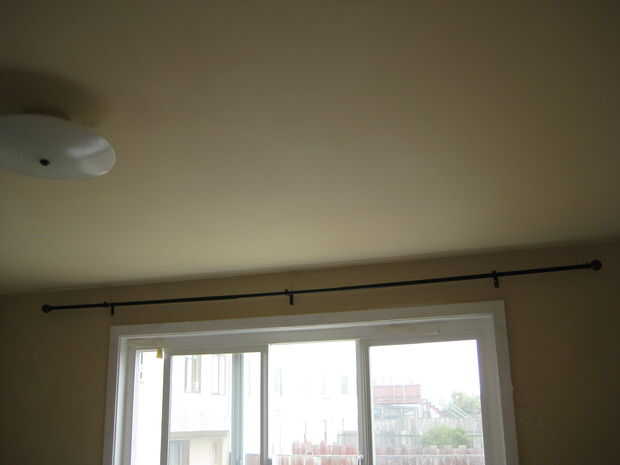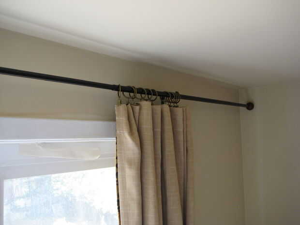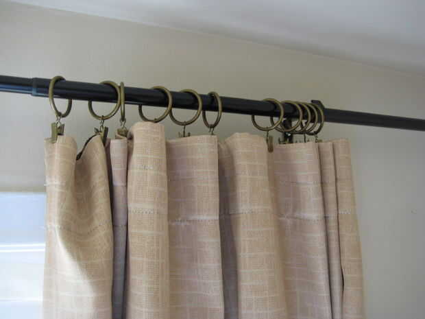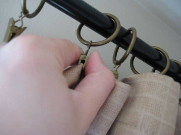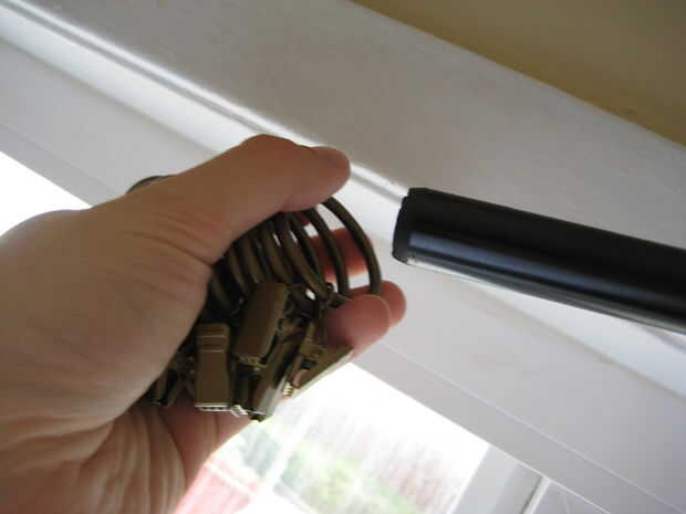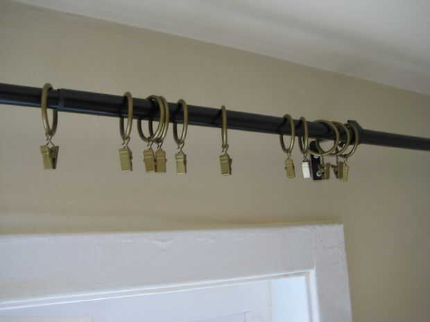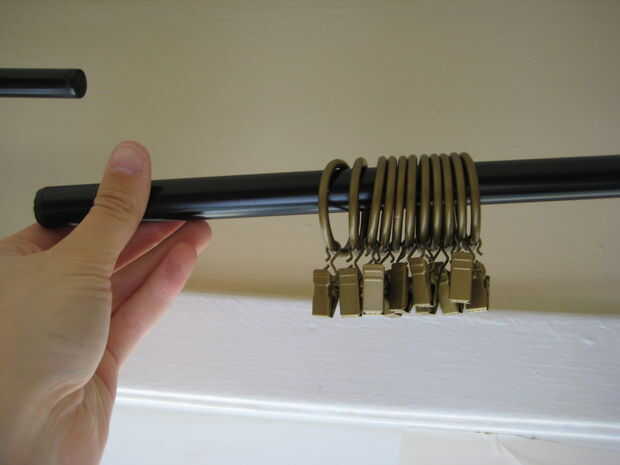 Si eres como yo, entonces ya tienes una barra de cortina instalada y con una cortina mitad en él. Tomar la cortina y anillos de cortina de la barra.