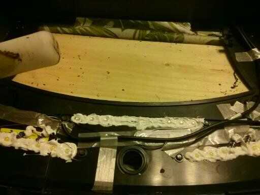 Cuando los cables se sueldan en, y han finalizado cables, su tiempo para sellar todo! Utiliza sellador de silicona de baño estándar y aparte de no usar claro, funcionó bien. Sólo asegúrese de que obtener todos los cables y contactos desnudas bien sellados para evitar la oxidación y la corrosión. También he añadido alguna cinta a la parte superior para evitar que el sellador rezuma canal desde mi corte era imprecisa, ver última foto.