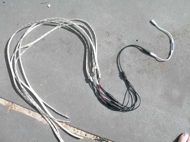 (Una vez tuve conectado probado con la batería para asegurarse de que todo estaba trabajando antes de que conecté al paraguas.) -Todo está funcionando bien y muy brillante, mi siguiente paso es fijar a las vigas de paraguas.