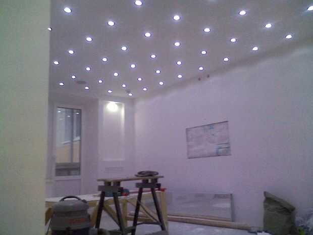 Compré 10 de estas luces en una ferretería y comenzó experimentando con cuanta luz estos daría hacia fuera. Resultó que yo era feliz con 4 bombillas-por cada 10 pies cuadrados (1 m2).