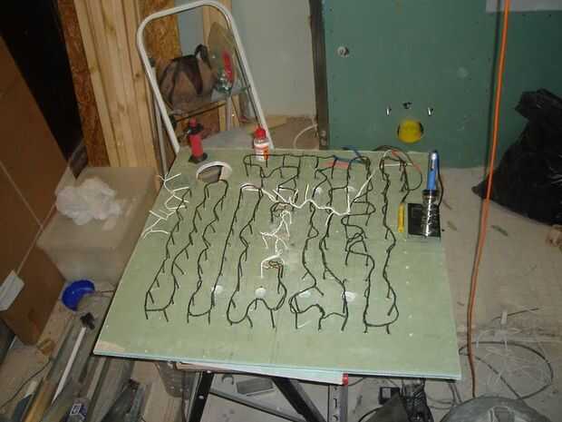 Ahora tuve que comprar los cables. Cada LED utiliza 2,4 vatios de energía. Así que si al mismo tiempo encendí todas las 135 luces yo estaría utilizando 135 x 2.4 = 324 vatios. Y según la ley de Ohm, esto significa que habría una corriente a través de los cables (324 vatios dividido por 220 Vca) 1,5 amperios. Entonces busqué tablas de diámetro de alambre en línea y consiguió 3 veces el diámetro que necesitaba, que era de 1,5 milímetros cuadrados.