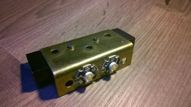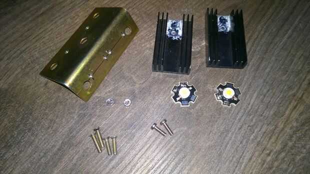 La luz delantera no es difícil de hacer. Primero compré el led y los disipadores de calor y más tarde la rodillera. Hice realmente no vieron las medidas de la ortesis, como mi led cabrían en él y cabrían bajo mi cubierta. Para montar el led y los disipadores de calor tuve que taladrar los agujeros en el soporte por lo que podría atornillarlos en él. Puse el led en el soporte para que cabrían, dibujó algunos puntos donde los pernos tuvieron que venir y perforaron los holles allí. para los LEDs 3,5 mm agujeros perforados y perforado sacarlos con un M4 Pulse taladro. Para los disipadores de calor hice lo mismo con un 3mm taladro exepto ahora yo no toque en los agujeros. Los disipadores de calor se unen con las tuercas y los pernos M3 y de led con sólo los pernos de M4. Se conectan los cables al igual que en la última foto. Por último pongo algunos kit de silicona transparente sobre los LEDs para protegerlos del agua y el daño.