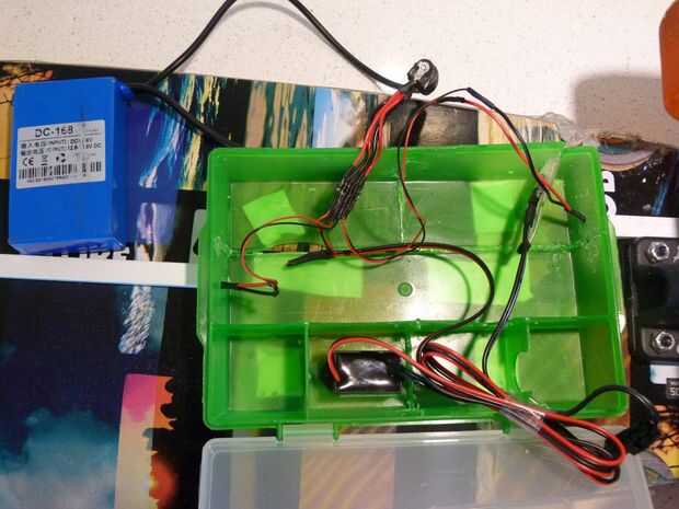 Aquí es donde todo sucede y todo combina. Pegué la luz trasera con cola para madera para la terraza (se puede también hacer con un kit de montaje), el cuadro verde se une con fuerte dubbelsided tapestickers, y la luz delantera es mantener en posición con fuerte montaje kit rigth tras las ruedas delanteras (esto da el efecto como si mis ruedas son de color naranja brillante). Los cables pasan por la bandeja de cable pequeño, que normalmente se utiliza para techos, a la caja donde todo está conectado a la batería. Tuve que perforar tres agujeros pequeños para que los cables podrían entrar en la caja de los lados. La bandeja de cable también se une con cinta de dubbelsided que está ya allí. Dentro de la caja es la batería que se conecta a un enchufe. Este enchufe va con tres rojos y tres negros cables a un jefe masculino del seis pin, así que tengo tres conexiones rojo/negro suministro de 12 voltios a la luz de frente/parte posterior y la c.c. al convertidor de ac para hacer el trabajo el alambre. En las fotos es buenas ver cómo lo hice.