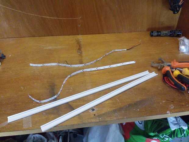 Cortar dos piezas de 60cm cada uno, les conectados juntos. y pegado a un soporte de plástico de 60cm