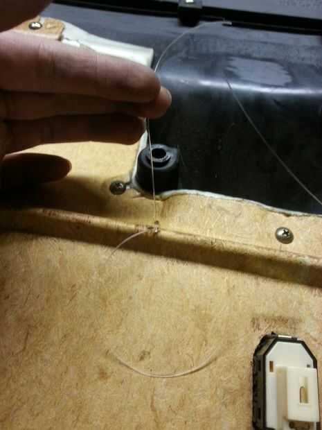 Corté a través de él se hizo un agujero bastante agradable no a grande no a lo suficientemente pequeño para el hilo de pescar ir al panel de la puerta...