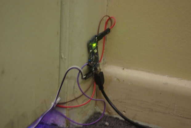 Si usted tiene un caso (que tristemente no), puede poner el arduino allí antes de fijar a la pared, pero si no entonces a hacer lo que hice y use alguna tachuela pegajosa. ¿No se ve que muy bien, pero bueno - que aún mira hacia allí de todos modos? Conecte el cable USB para arduino y conéctelo a su computadora en la preparación de la programación.