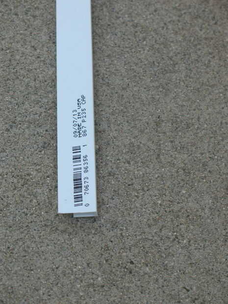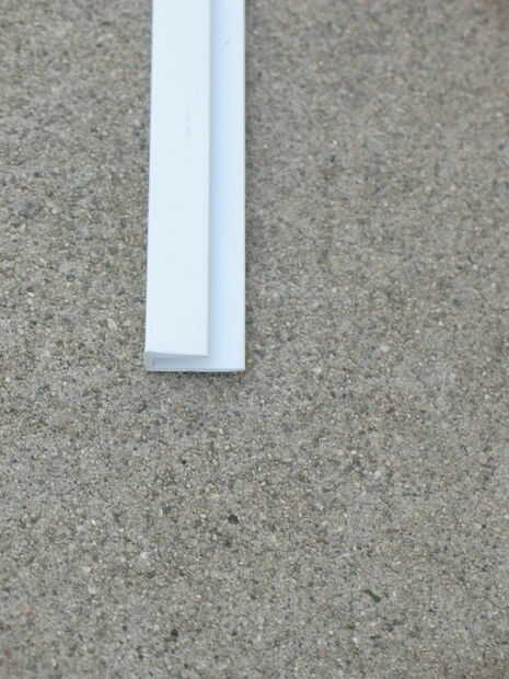 - Tiras de plástico - estos eran de Home Depot: Royal molduras modelo 867 1/4 pulg. x 3/4 pulgadas x 8 pies PVC compuesto blanco FRP tapa moldura.