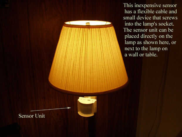Esto muestra una conexión típica lámpara con el sensor de la lámpara sí mismo y la sombra instalado.