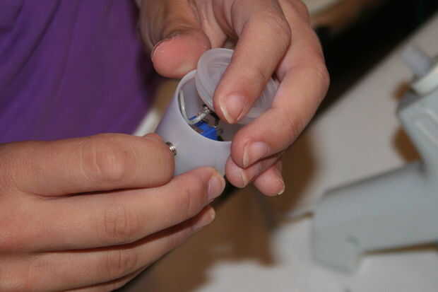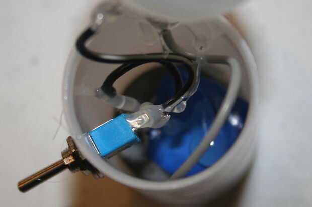 Caliente pegar los alambres expuestos pero no pegar al lado de la lata o no puede cerrar la tapa.