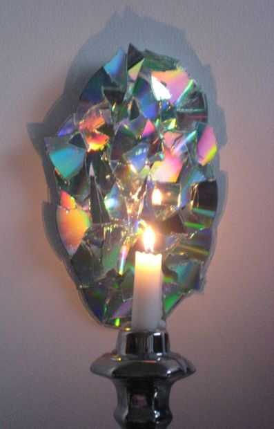 Primero hice esto con los CD de sobras de una lámpara que hice hace unos años: http://www.alialexander.com.au/chandelier.htm