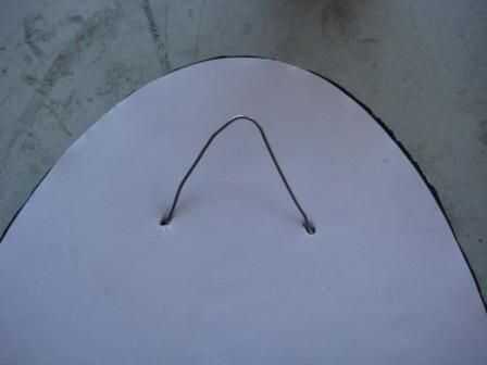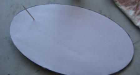 Puede utilizar los palillos para hacer 2 agujeros en el óvalo. Empujar el clip a través de los agujeros y darle algunos ' rizos. He puesto grandes toques de pegamento en los rizos para detener el gancho cayendo hacia fuera.