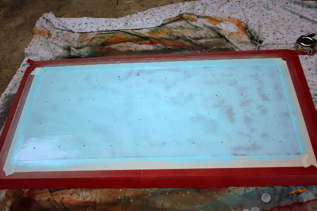 Limpie la base con un paño seco para eliminar el polvo. Pintura de aerosol lo lo que te gusta. Le di un borde rojo con un núcleo de aqua azul. Dejar que se seque. Se vuelven locos aquí! Píntalo como te gusta. Incluso no tienes que pintarlo. Puede cubrir con diferentes tipos de anuncios de periódico de la tela que llenan nuestros buzones... cualquier cosa... o dejarlo así.