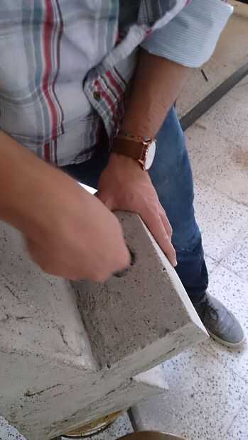 Después de 5 días, se dará cuenta que ha cambiado el color del bloque. Significa que es suficientemente seco para utilizarlo. Para sharp capacitando como diseñé, debe usar un papel de lija para aplanar las caras y afilar los bordes. También puede quitar los tubos de plástico, no lo necesita ya. Usted puede intentar soplar dentro de la manguera por detrás y asegúrese de que el aire pasa a primer plano de los orificios. El bloque de hormigón está listo para el último paso.