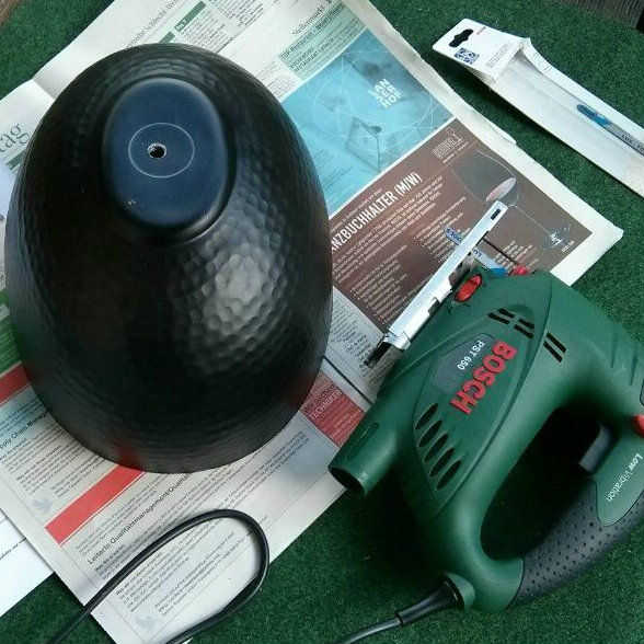 • realizar múltiples cortes del orificio taladrado en línea dibujada con jigsaw (uso hoja de sierra para metal) y