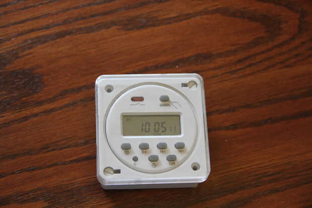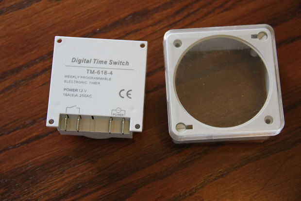 El temporizador 12v es un cacharrito muy agradable. Puede encender el temporizador de su batería de 12v, pero no es necesario porque hay una batería en el interior. Creo que dijeron que era un 3v. Programar es fácil y te da muchas opciones. Usted puede programar días específicos, apenas los fines de semana, o todos los días. Hay 24 ajustes de hora, algo así. El primero es un ajuste "on" y el segundo y "off" posición. Procede así hasta 24.