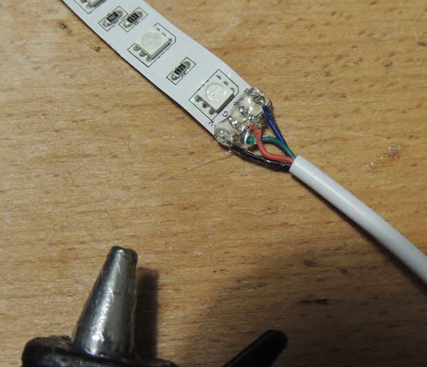 1. Utilice un pegote de pegamento caliente para aislar las conexiones y dejar enfriar.
