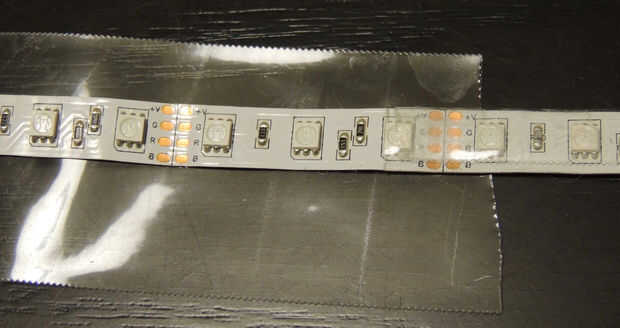 4. Doblar un lado largo y luego al lado de la tira a prueba de agua.
