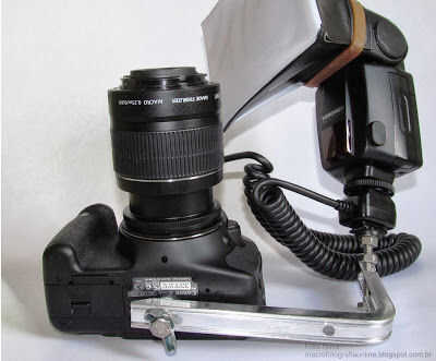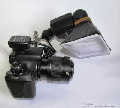 Estas fotos muestran la configuración construí. En este caso hay una Canon EOS REBEL T3i cámara 600D YONGNUO YN460 Flash + Cable alargador + Mini softbox como un difusor (US$ 10 dólares en Ebay).