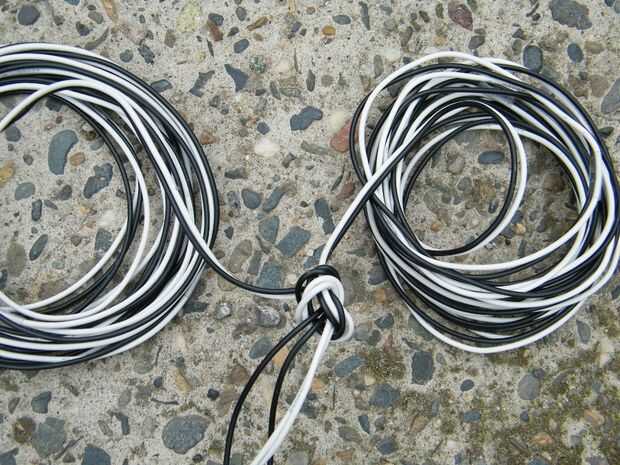 Utilice una sola hebra de cada color para conectar cada linterna - negro con negro y blanco con blanco.