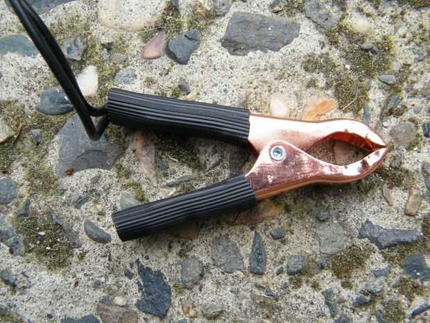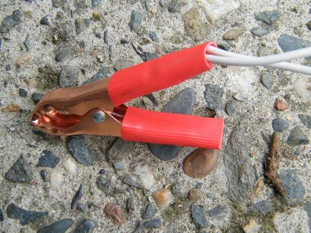 Conecte las pinzas de la batería girando ambos cables negros juntos y prensar en la pinza negra (negativa) y dos cables blancos en la pinza roja (positiva). Como con todo el cableado, asegúrese de no hay metal desnudo mostrando en cualquiera de sus conexiones. Desea a su cabina - no el marco de la cabina! Y ciertamente no quieren electrocutar a alguien.