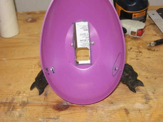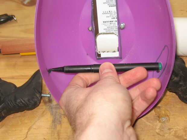Después de que usted fije la primera pierna, necesitarás a un segundo o el huevo se verá tonto. para determinar dónde colocar la otra pierna. Le aguanté un marcador frente al tornillo de la primera etapa y tipo de comentarlo. Entonces repetí todo encontrar, tamaño y proceso de perforación.
