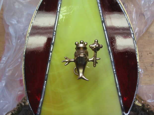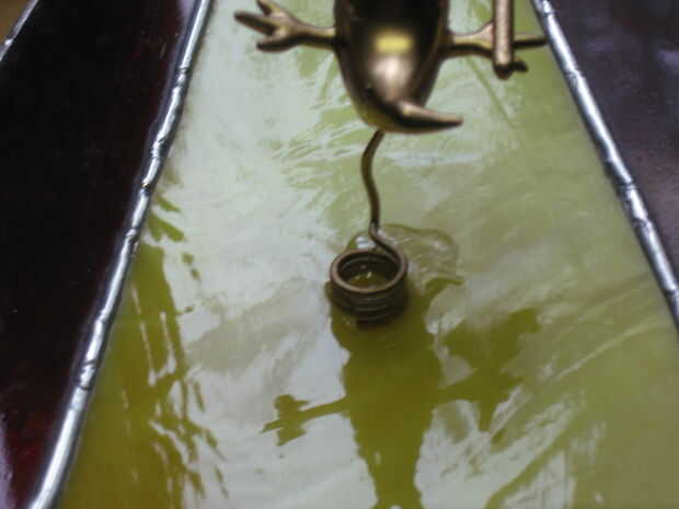 La última parte de este paso es colocar la figura sobre el vidrio. Elegir un lugar para montar la figura sobre el vidrio. Mezclar algunos epoxy y coloque una gota generosa en su elegido punto. Luego coloque el extremo del alambre que sobresalen de la figura en el dab y manténgalo hasta que seque el epoxi.