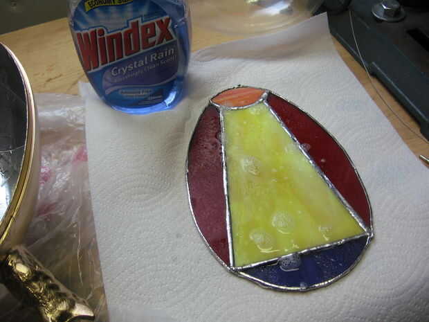 A continuación usted querrá limpiar la cara de los vitrales que se enfrentan hacia el interior. Usé cristal limpiador para eliminar el polvo o las huellas dactilares. Asegúrese de que está realmente limpio como usted nunca será capaz de limpiar este lado del vidrio otra vez.