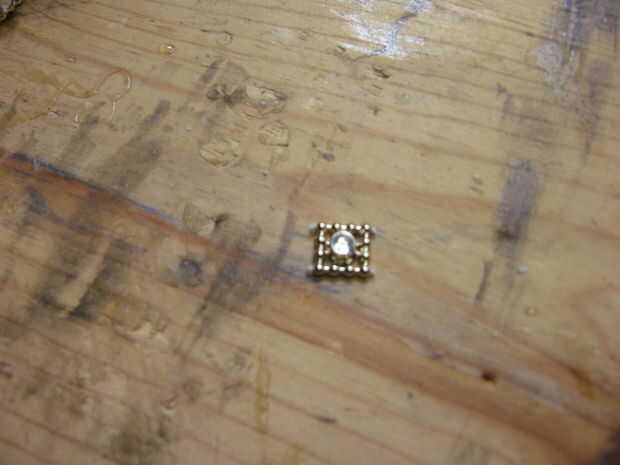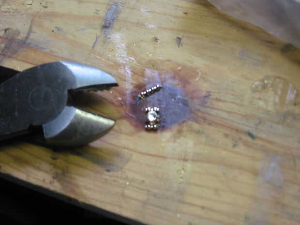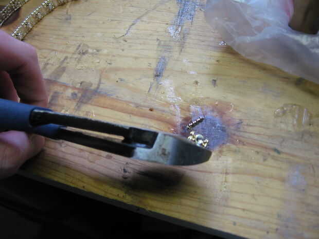 Cuando hice alrededor del perímetro para el punto de partida me enfrenté a un problema. Los extremos no subiendo a la línea. El espacio de izquierda era demasiado estrecho. Así que corté un pedazo individual de bling. Entonces enangostó con pinzas y una Dremel para que se ajuste la brecha y había pegado en lugar.