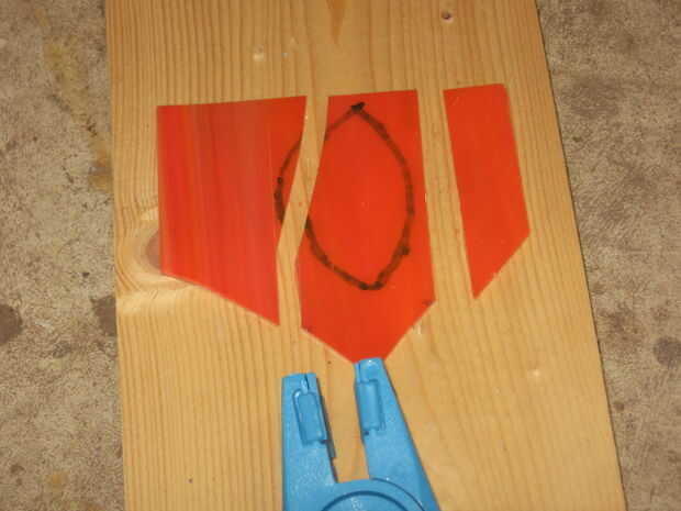 Una vez has anotado el uso de la línea cristal rotura alicates para romper el vidrio a lo largo de la línea anotada. La mayoría vidrio rotura alicates tienen una cresta que marca el centro de la boca de unos alicates. Intenta alinear este canto con la línea y luego apriete. Si todo va según lo previsto el vidrio se romperá a lo largo de la línea. Las curvas de prueba y recorte como mucho exceso marcando líneas perpendiculares al contorno trazado. Esto significa menos para moler más tarde.