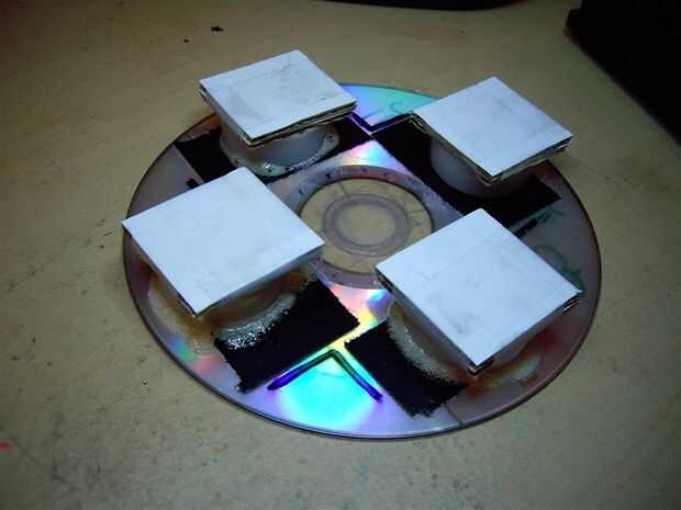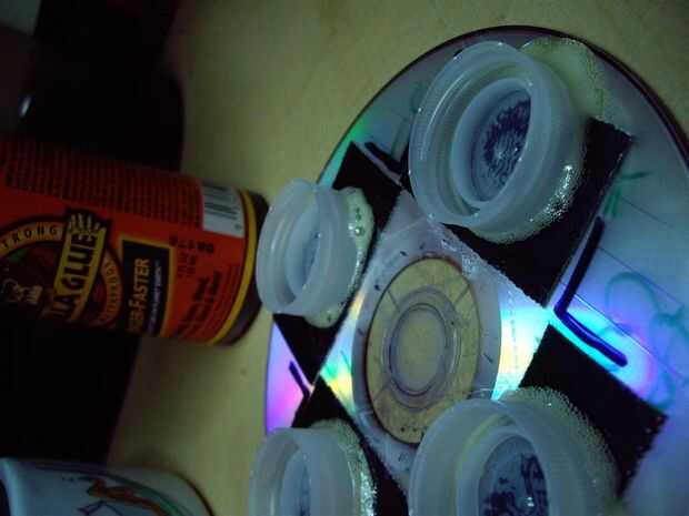 ADVERTENCIA: Algunos CD, mina, tiene una fina película que protege la cara, y tiene una tendencia a salir. Puede arriesgarse como yo lo hice y solo pegar cosas sobre él, pero sería sabio escaparlo primero, si es posible. Los pies no deben estar bajo mucho estrés.