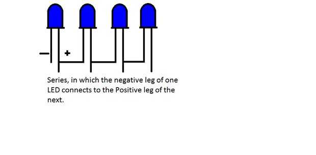 Para un proyecto grande como este quiere ejecutar los LEDs en el significado de serie el cable de negativo de lo LED se conecta a positivo en el LED siguiente y así sucesivamente, coloque los LEDs en los agujeros y luego pegarlos en su lugar con pegamento, pegamento caliente es ideal porque es fácil de usar y se seca rápidamente , también no va a dañar el LED. Su pegado hecho para empezar a conectar los LED ' s con un pequeño cable calibre (si no llega los conductores) su más fácil doblar las puntas plana entonces pegar el segmento de alambre debajo de ellos y luego soldar entre sí. Desea el positivo y negativo al final juntos y luego para el funcionamiento de los lados a que tendrá que averiguar cómo debe cablearse porque variará ser seguro que son todos en serie, el mismo va para el frente