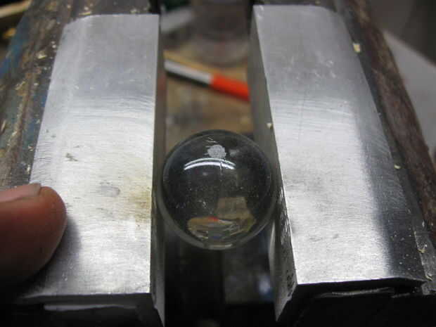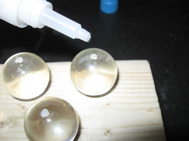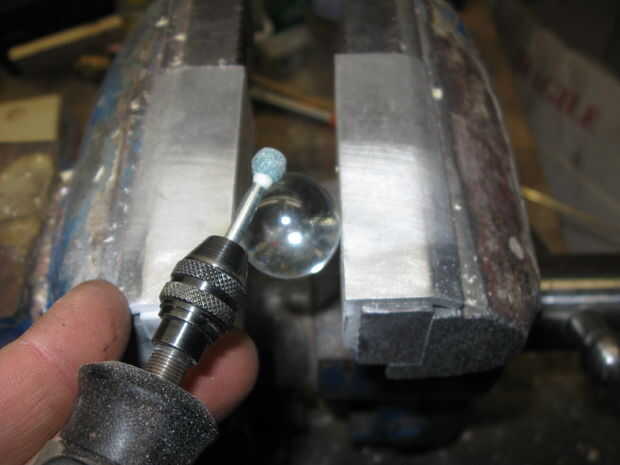 Las canicas también tendrá un pequeño trozo de área reprimen para contacto. Otra vez usé la Dremel y un disco abrasivo para moler un piso pequeño en la superficie.