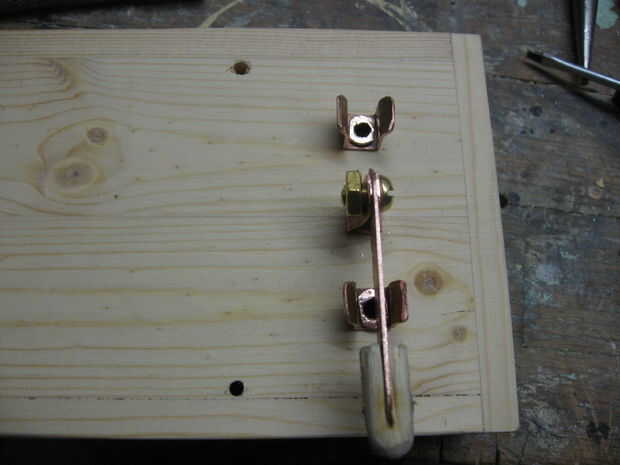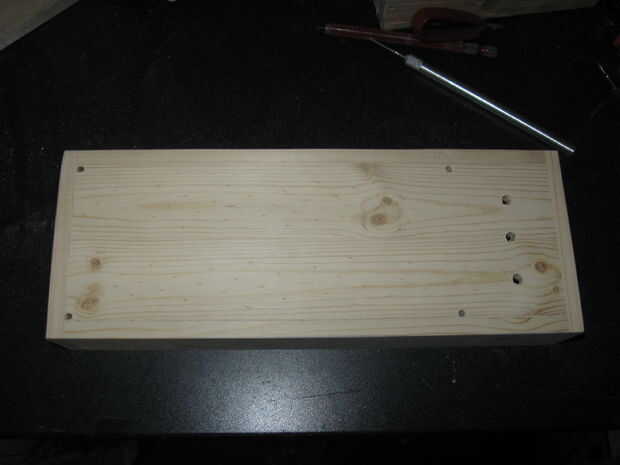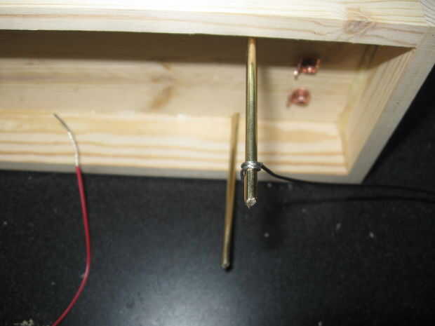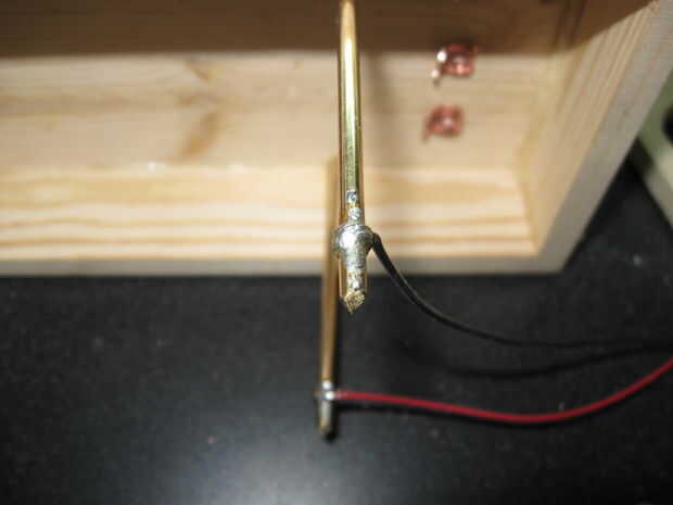 Decidí usar un interruptor en la parte superior así como un asta de configurar que 7 pulgadas de la parte superior. Los agujeros de la varilla de soporte son 1/8 de pulgada para el barra de soldadura de latón y 3 orificios para el interruptor de cuchillo de 3/16.