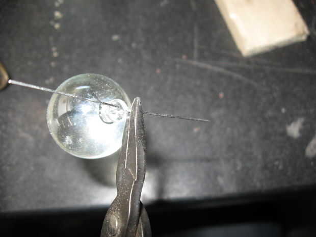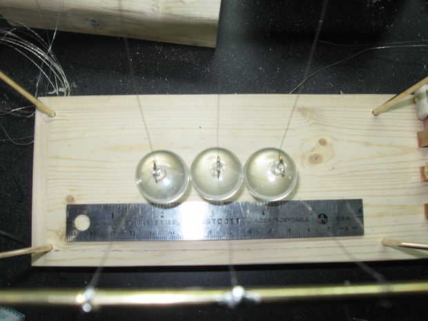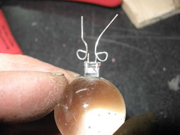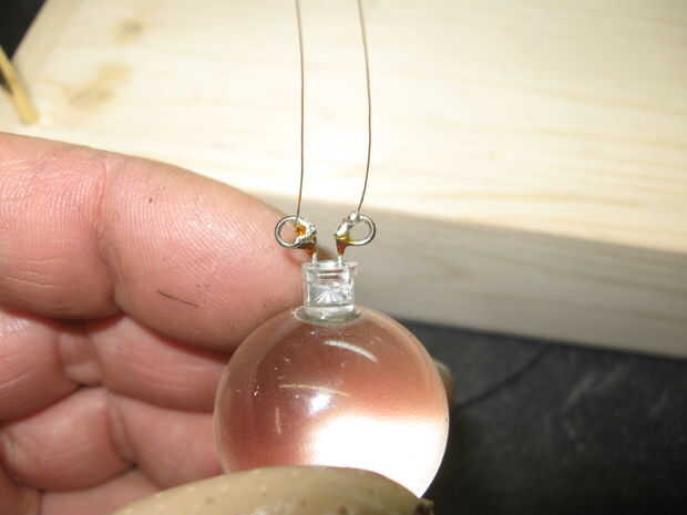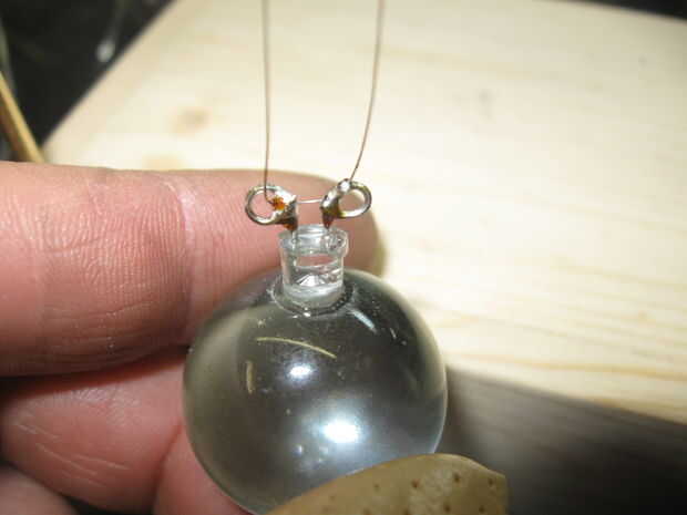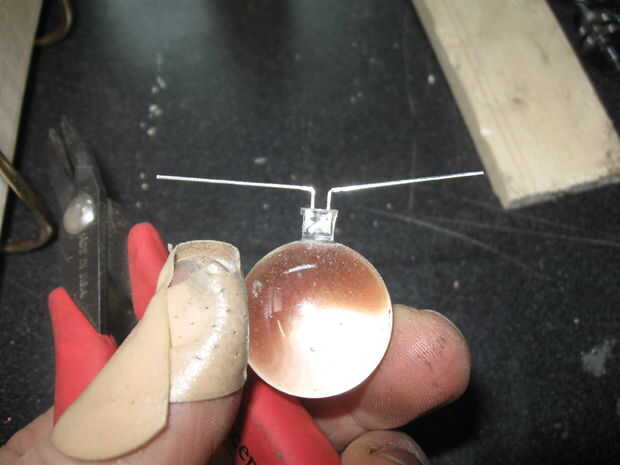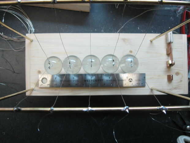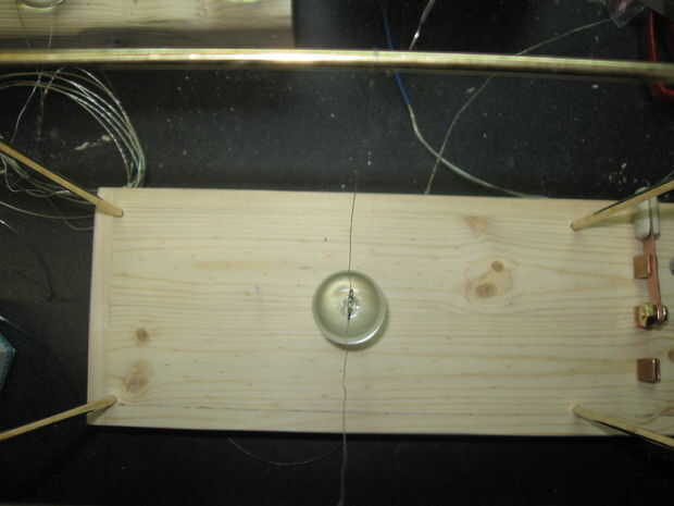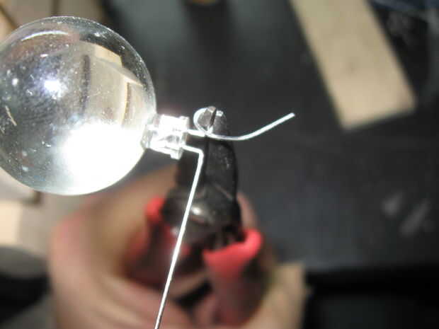 Una vez que estés satisfecho con la posición de la bola de la soldadura de los extremos del alambre de suspensión a las barras de latón. Necesita mucho calor y asegúrese de que no se trata de una Junta de soldadura fría.
