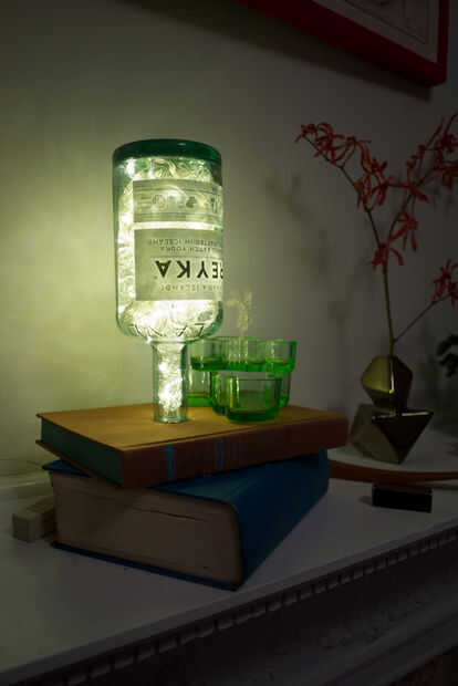 He hecho estos con y sin etiquetas. Si desea quitar tuyo, sugiero correr la botella con agua tibia y con una herramienta de raspado de metal. Una vez que el papel es sobre todo desaparecido puede frotar apagado lo pegajoso con un poco de goo gone en una toalla de papel. Asegúrese de que la botella es bastante seca antes de pasar al siguiente paso.