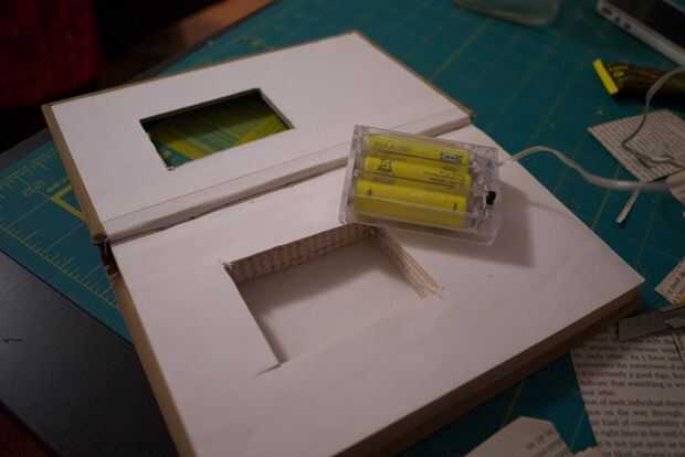 Finalmente, corte una cavidad para el paquete de masa en la misma línea como el agujero de la tapa posterior.