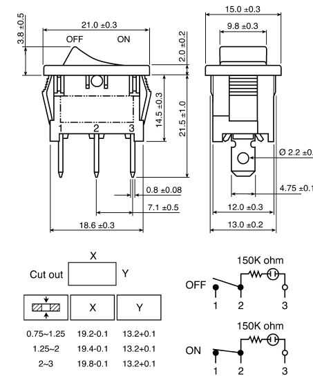 Una vez que tenemos todas las piezas delante de mí, era capaz de igualar la hoja de datos (Foto 2). En la parte inferior derecha de la imagen de la hoja de datos puedes ver que contactos 2 y 3 son donde se conectó la luz. Me cortó la luz y la resistencia de ohm 150 k y los descarta. La luz no va no funciona a la tensión de todos modos quería (debe haber basado en 125V a través de un resistor de 150kohm, no seguro por qué no). Intercambiado en un 1206 SMD LED azul (3.2-3.4V). Yo pretendía ejecutar 5mA a través del LED (podría haber hecho más) así que cogí una fresca 10 k ohm resistencia así. Usted puede diseñar el interruptor para iluminar a cualquier voltaje que desea, sólo coincide con la resistencia en consecuencia.