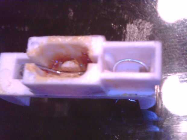 El primer paso fue sólo averiguar cómo separe por lo que he podido conseguir en las partes internas. Encontré que con unas pinzas que pude sacar la mecedora azul superior de la caja negra mientras empuja también en las aletas laterales (en el lado del borde largo, los agujeros donde quede el interruptor). Haciendo así que causó todo esto a la primavera aparte de mí, así que recomiendo que trate de ser más cuidadoso que yo estaba!