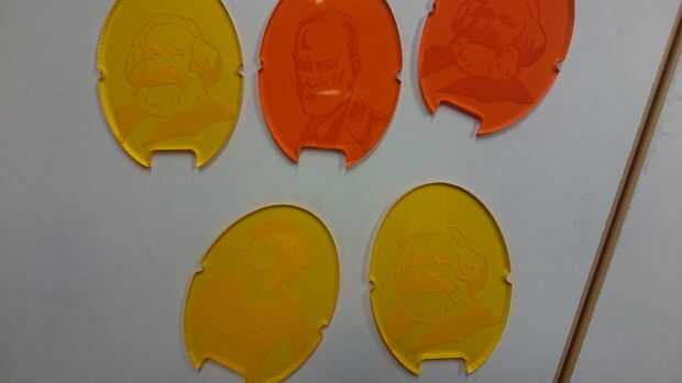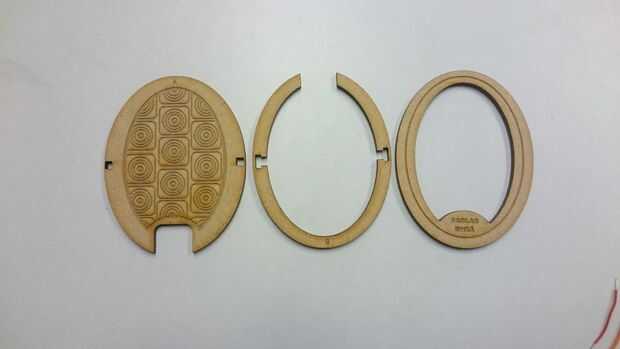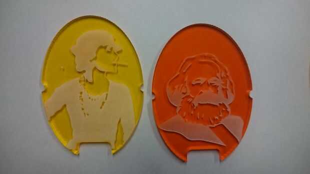 La parte trasera y el marco fueron grabados y corte en el cortador del laser en tablero MDF de 3 mm, y el plástico acrílico tiene el mismo tratamiento. Probamos diferentes tipos de retratos y elegido para hacer el prototipo con Coco Chanel en acrílico naranja.