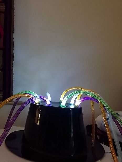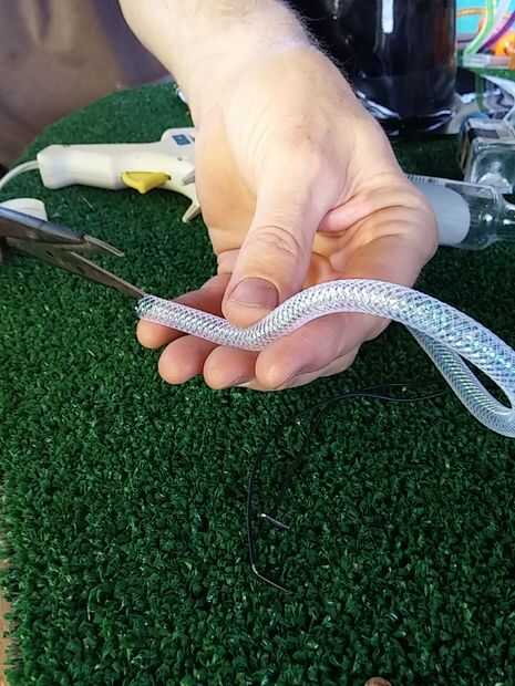 Los LED fueron ligeramente más grandes que la tubería de la malla, así que corte aproximadamente 1/2" en la tubería de la malla para ayudar a encajar en la parte superior de cada LED. Luego pegué la malla sobre el LED con la pistola de pegamento caliente.