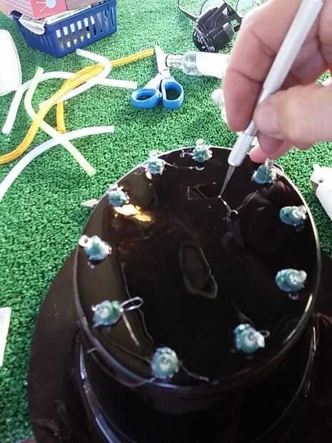 Aquí, puede ver el LED en su lugar y me corte el agujero para el interruptor de encendido/apagado. Traté de ángulo que el LED se ilumina ligeramente hacia el exterior así que iluminan tanto de la tubería de acoplamiento posible.