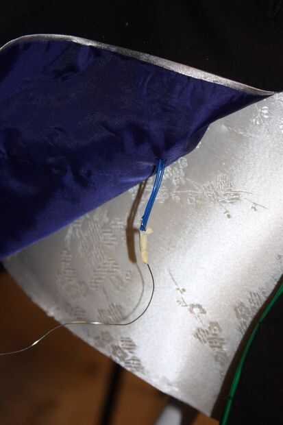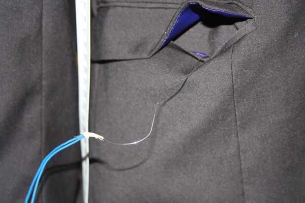 Inonder al alcance de mi bolsillo "flap" para el controlador, que tenía que pasar por el lado de pocked e interior de la chaqueta. Eso significó que tuve que hacer dos agujeros.