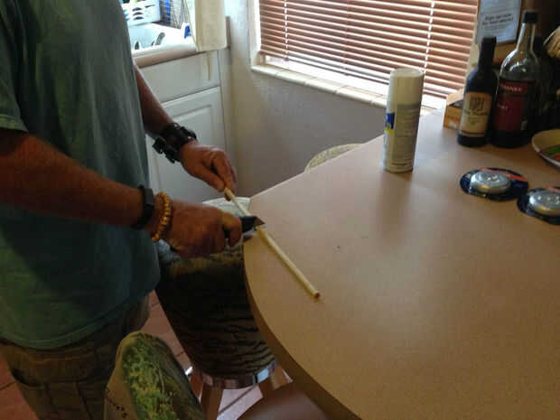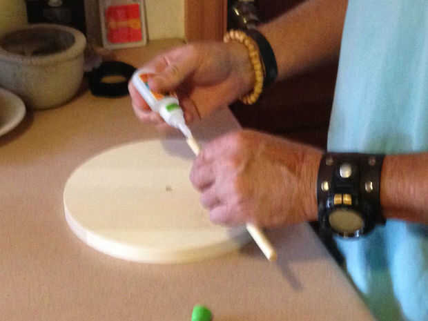Ajuste el pasador a una longitud de 8 pulgadas y pegamento en el agujero en el centro de la base.
