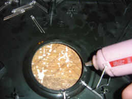 Siguiente que desea poner un poco de pegamento en una marca y luego colocar la bombilla en el pegamento. Asegúrese de que la pata positiva es hacia abajo. (La que más) Una vez que el pegamento se haya enfriado siguen colocando los bulbos en la tapa hasta que se pegan en el lugar.