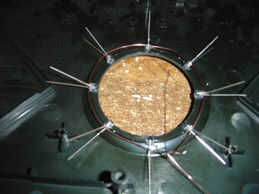 A continuación queremos tomar 2 largos trozos de alambre y quitarlos completamente desnudo. El alambre debe ser lo suficientemente larga para ir totalmente alrededor del círculo con el alambre de sobra. pone alrededor del anillo entero de luces (déjese sobre 2 o 3 pulgadas antes de la primera luz) asegurándose de poner encima de las piernas positivo de las luces. . (Si has seguido las instrucciones correctamente son las piernas más largas y deben estar en la parte inferior. Si no está paradas y fijarlos)