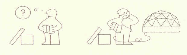 Sí, yo soy un gran fan IKEA, así como un admirador desde hace mucho tiempo de R. Buckminster Fuller. Así que, cuando tuve la oportunidad de mudarse a una casa domo geodésico la primavera pasada, no pude resistir hacking gráfico IKEA ayuda, encuentra al final de cada manual de montaje IKEA, así para mi nueva tarjeta personal. Estoy jubilado, así que supongo que ya no es una tarjeta de visita. (Gracias por la ayuda de gráficos, Randy!)