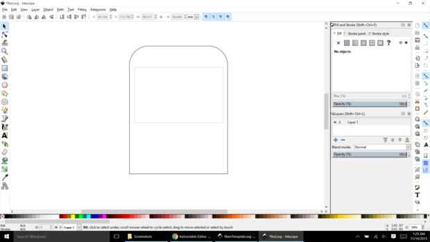 Por lo que para crear la plantilla principal utiliza Inkscape. Este no es un tutorial sobre cómo usar Inkscape sin embargo, pero ya hay muchos tutoriales impresionantes. Aquí están solo algunos simplemente hice un esbozo que se corte y luego hizo un cuadro en donde se coloco la imagen en el software de corte de láser. Borré el contorno de la imagen antes de que lo envié a la cortadora láser.
