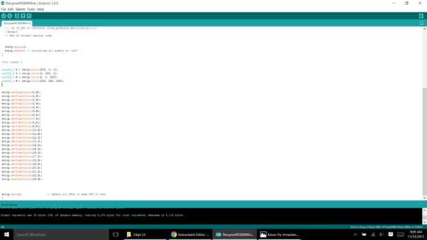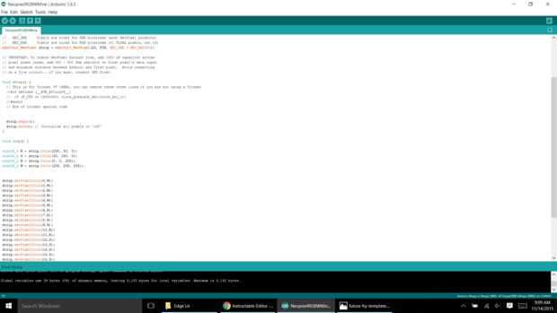Estas líneas definen la salida de color para cada color que le asignemos. Estas son clave para ajustar los colores más adelante! Los números representan cómo brillante cada color va a ser en ese píxel. Establece el número de entre 0 y 255, 255, siendo el más brillante y 0 fuera. Es etiquetado como este (rojo, verde, azul) así que como puedes ver arriba R = tira. Color (255, 0, 0); el número rojo que representa se encuentra a 255 y los otros colores que se establece en 0. Observe cómo blanco establece todos los colores a 255, que es lo más cercano al blanco como nos pondremos sin una tira led blanca dedicadoa, pero funciona bastante bien.