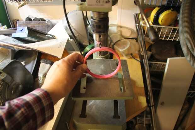 Corte un anillo ancho de 10 mm desde el mismo tubo de plástico de 100 mm. La tira de LED se montará a este anillo.