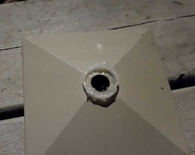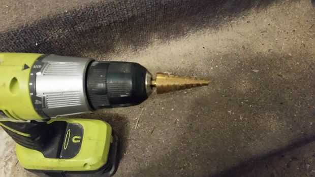 En primer lugar, quitar el poste inferior y medir lo ancho tienes que ir con la broca escalonada. Luego perfore al tamaño deseado.